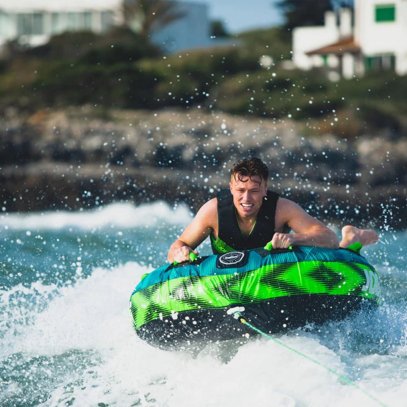La bouée de traction HOT SEAT est prévue pour un usage en solo assise ou à plat ventre. Cette bouée est plus grande que la gamme crusher et rumble.